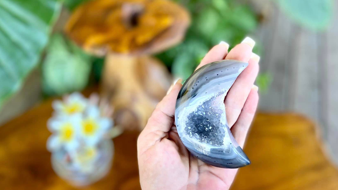 Compared to other gemstones in the mineral kingdom, Agate properties radiate a lower, more gentle frequency, which makes them an ideal piece for someone looking to slow down and get centered.