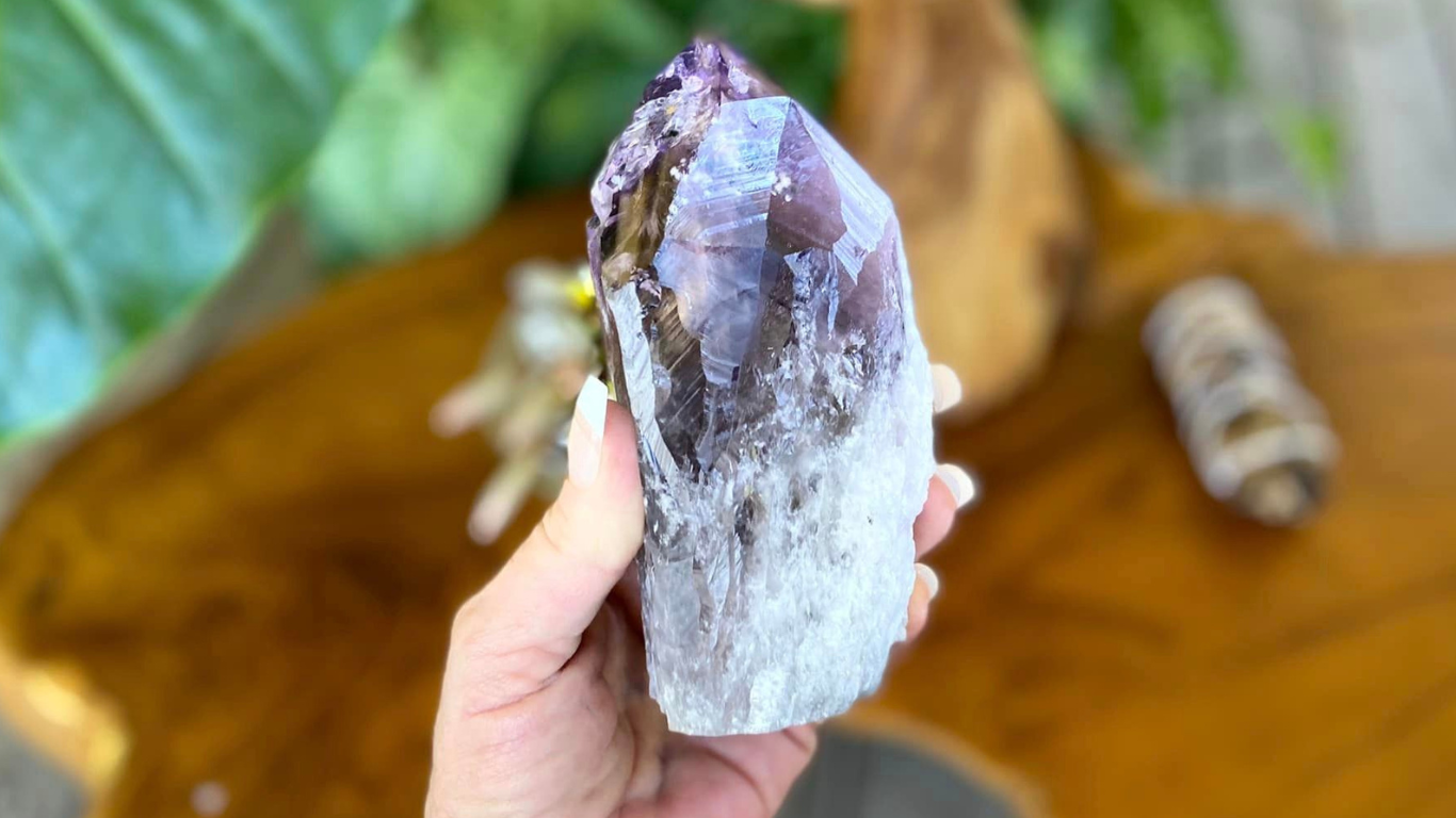 Exquisite and AAA+ Grade, this stunning Natural Point boasts a Amethyst Phantom that is just enchanting and a touch of Smoky Quartz.