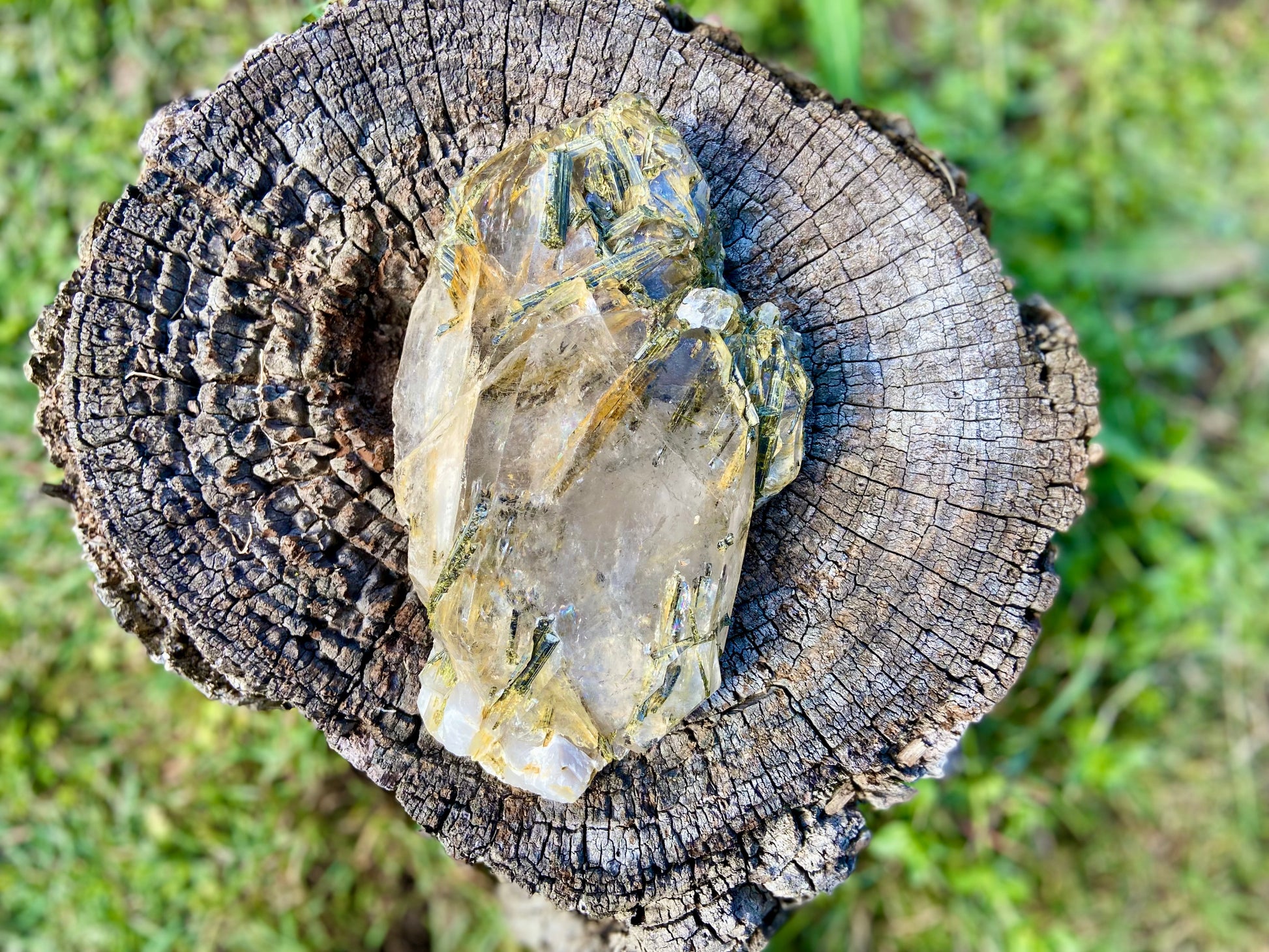 Born from the union of Clear Quartz and rich green Epidote, my crystalline body is a beacon of growth, prosperity, and transformation. I hold the vibrations of the Earth’s primal wisdom, aligning with the devas, nature spirits, and angelic realms. My presence encourages the release of negativity, urging you to shed old patterns and embrace new, luminous ways of being. I am here to guide you through cycles of renewal, to help you evolve, and to bring you into harmony with the greater cosmic flow.