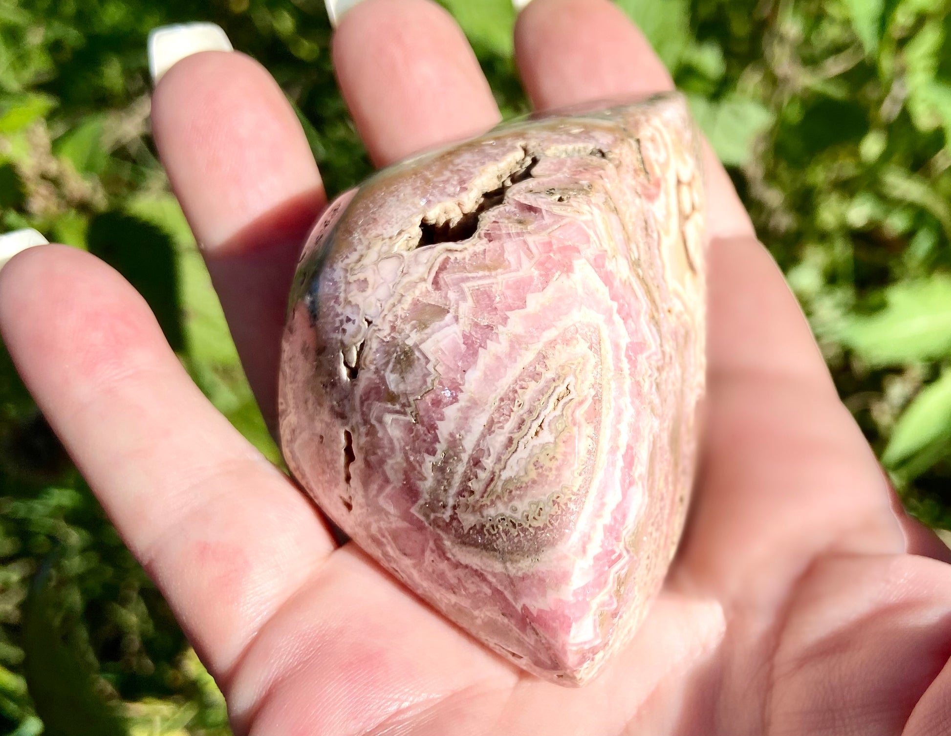 This stunning, high-grade Rhodochrosite freeform is a true collector’s gem, hand-selected from the legendary Capillitas mining district in Catamarca, Argentina. Polished on both sides, it reveals breathtaking natural banding in vibrant pinks with hints of red and pyrite.